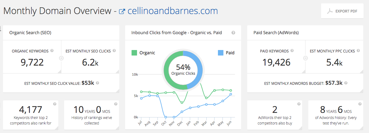 All these facts show that Cellinoandbarnes.com’s visibility in New York SERPs is because of the domain’s general performance in Google US organic search results: